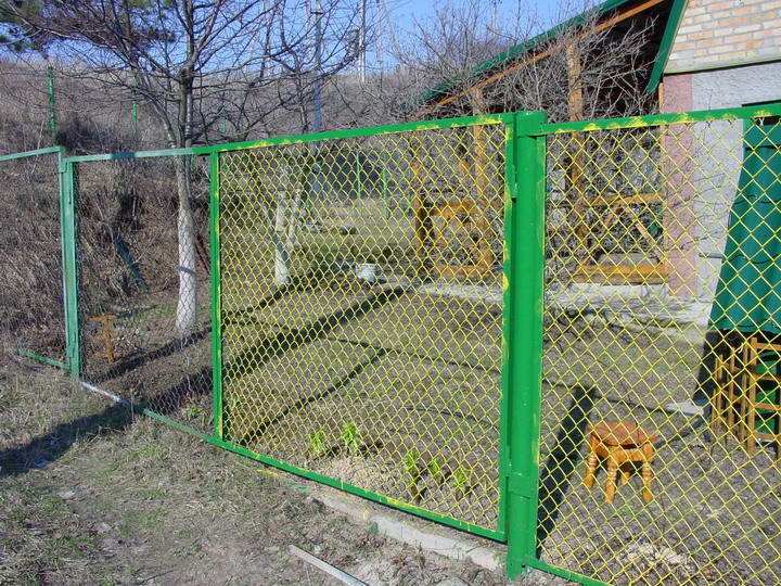 Красим забор: зелененькие столбики, желтенькая сеточка! Скажите, что это не красиво!
