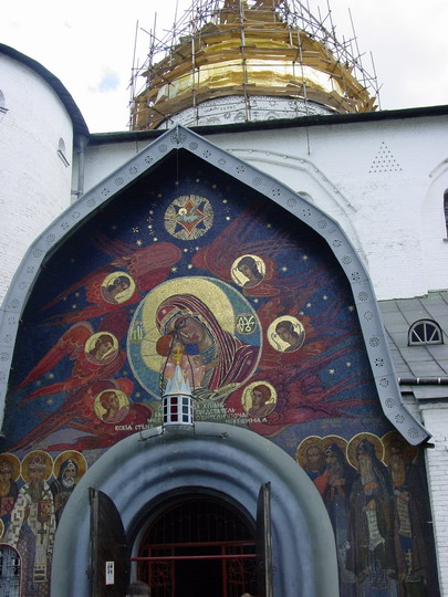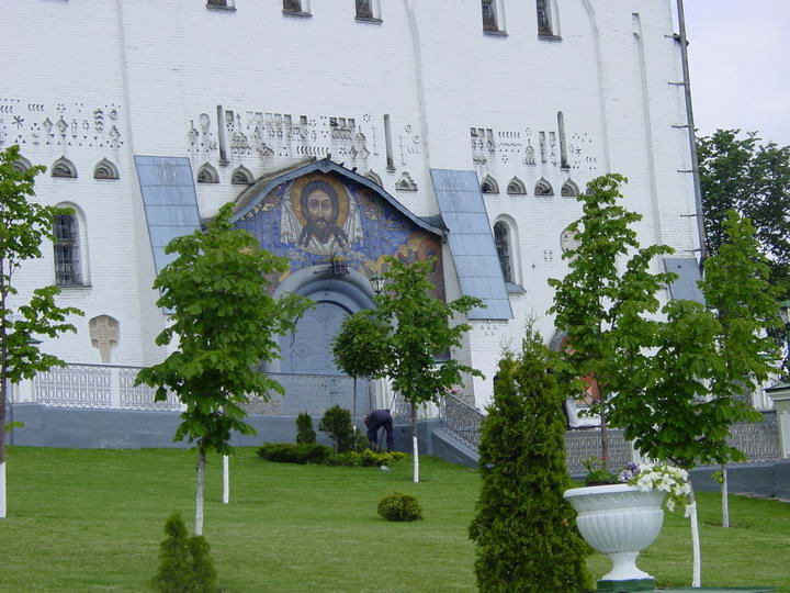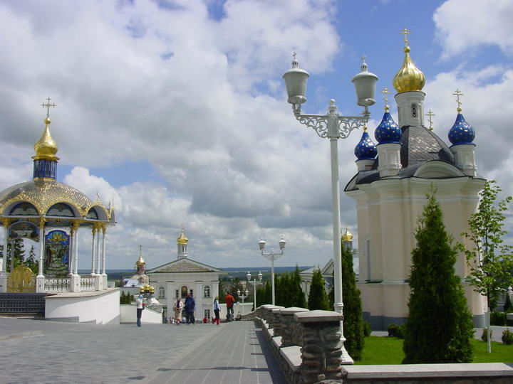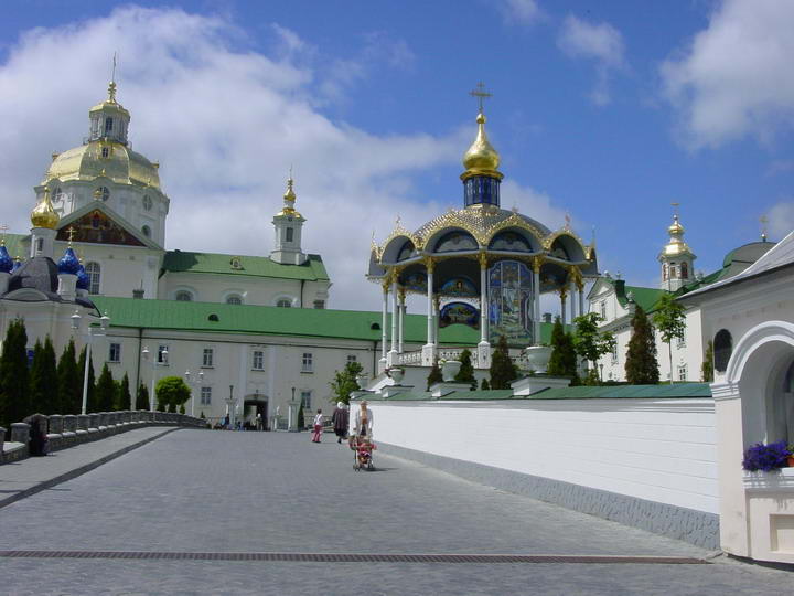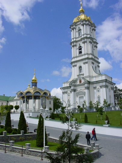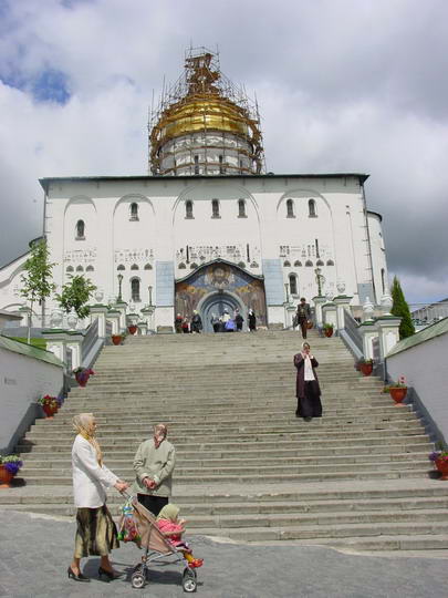 Следующий пункт культурной программы - Почаевская лавра (Московского патриархата). От Кременца до Почаева недалече, в хорошую погоду с горы Бона видны золотые купола лавры. На территорию без хустки и юбки не пускают. Все чисто, вылизано - евроремонт. |