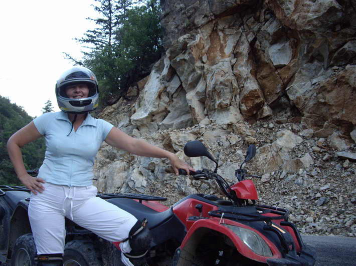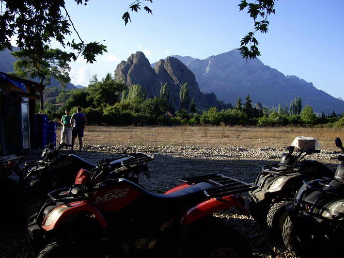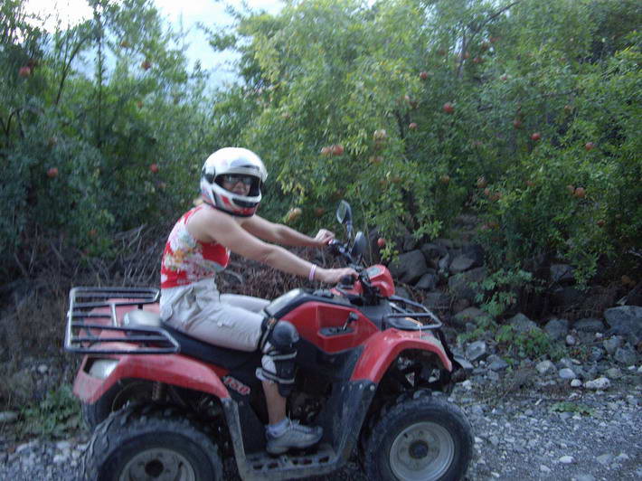 24 сентября. Квадрициклы. Трасса - через деревню,вдоль гранатовых деревьев, по руслу пересохшей реки, по горному серпантину над пропастью и бурлящей рекой.
