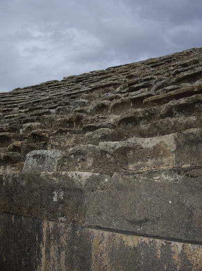 Амфитеатр расположен на склоне горы, вписан в естественный рельеф местности. Вполне прилично сохранившийся. 31ряд.